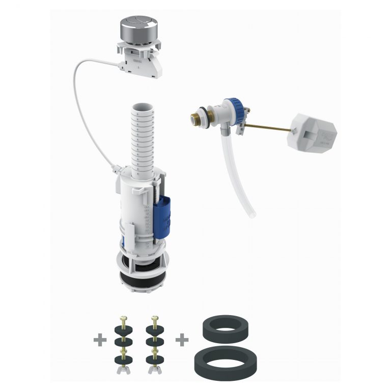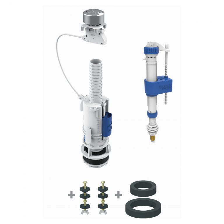 Mecanismo de pulsador cable doble descarga regulable mod Denia con alimentación lateral grifo modelo Servo