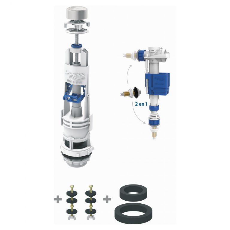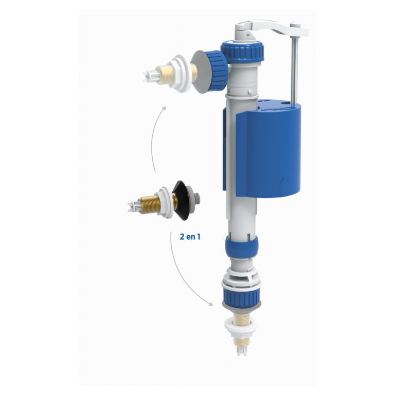 El grifo flotador compacto de alimentación lateral o inferior Dúo Servo orientable de Idrospania, dispone de diferentes montajes para configurarse de una forma u otra y está fabricado con polímeros