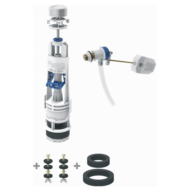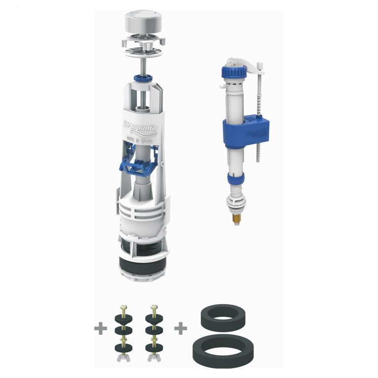 Mecanismo de pulsador SIMPLE E INTERRUMPIBLE modelo Loja, con tornillos taza tanque HB y GOMA de asiento + grifo de alimentación INFERIOR o LATERAL modelo