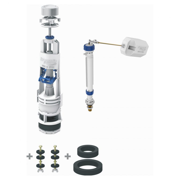 El grifo flotador compacto de alimentación lateral o inferior de cierre por pistón modelo Dúo Compact de Idrospania, está fabricado con polímeros plásticos de alta calidad y